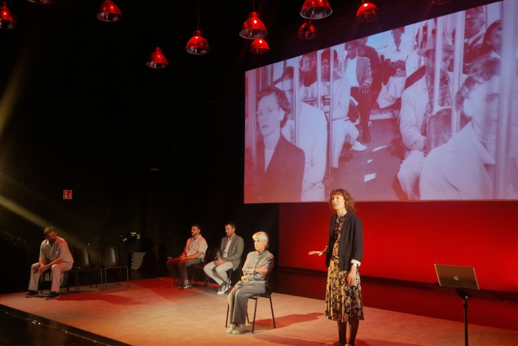 El espacio reúne a las y los profesionales que intervienen en la producción de las obras -dirección, equipo artístico y técnico- acompañándoles en todas las fases de la residencia.